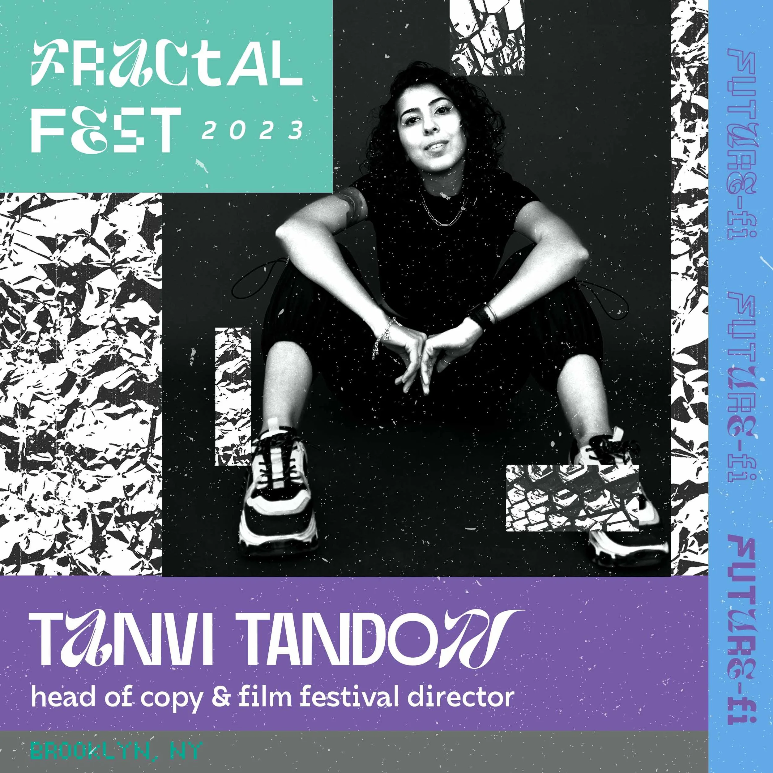 Tanvi Tandon, host of the fractal film festival is a copywrite specialist. As part of the Fractalfest team, she is a key figure in ensuring branding is consistent among imagery and type.